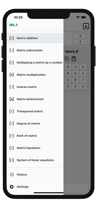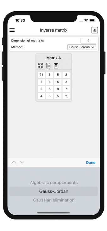 Matrix operations es una aplicación educativa diseñada para facilitar la resolución de problemas matemáticos relacionados con matrices. Ofrece una amplia gama de funcionalidades, como la resolución de sistemas de ecuaciones lineales mediante métodos como la eliminación de Gauss, la regla de Cramer y el método de la matriz inversa. Además, permite calcular determinantes, inversas, rangos y descomposiciones, entre otros. La aplicación es especialmente útil para estudiantes y profesionales que necesitan realizar cálculos complejos de manera eficiente.